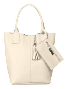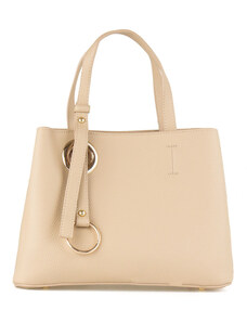 Coco's Bags Μπεζ Ματ Δερμάτινη Τσάντα Ώμου με Πορτοφολάκι και Κρόσσια