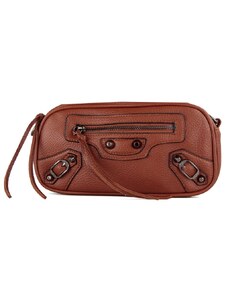 Coco's Bags Καφέ Τσαντάκι Χιαστί με Τρουκς