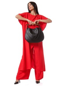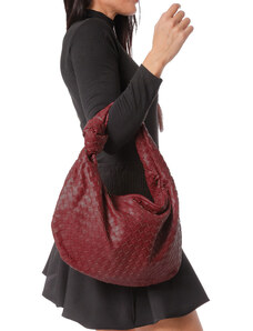 Coco's Bags Μπορντό Τσάντα Ώμου με Πλεκτό Σχέδιο