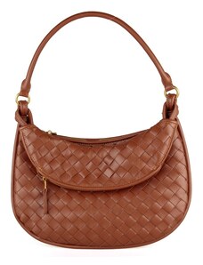 Coco's Bags Καφέ Τσάντα Ώμου με Πλεκτό Σχέδιο