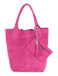 Coco's Bags Φούξια Καστόρινη Τσάντα Ώμου με Πορτοφολάκι και Κρόσσια