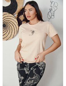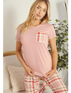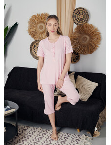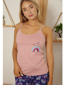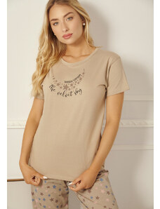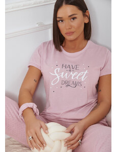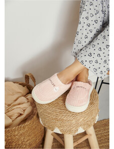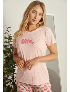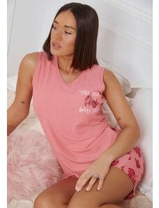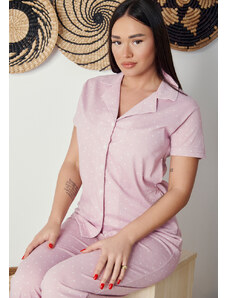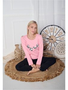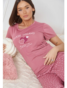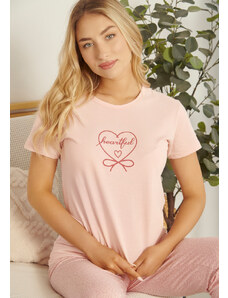 Comfort Πιτζάμα γυναικεία με πεταλούδα και logo με παντελόνι με καρδίες - ροζ
