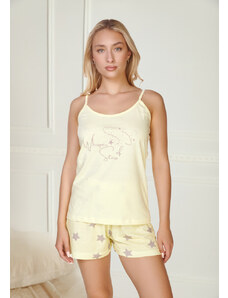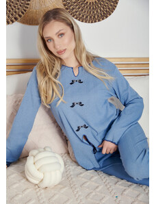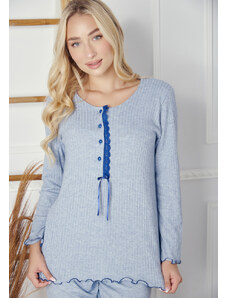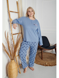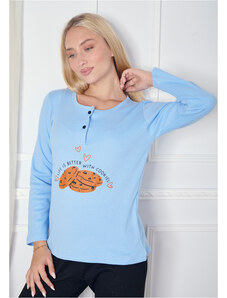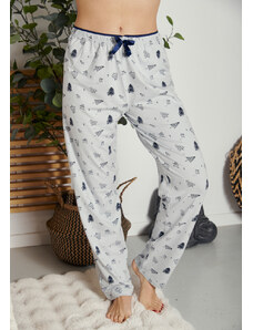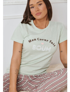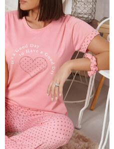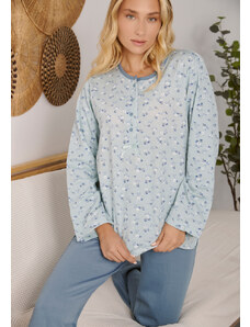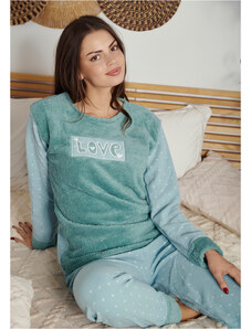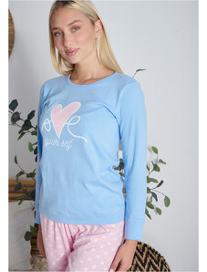 Comfort Πιτζάμα γυναικεία με καρδιά και logo με πουά παντελόνι - Σιέλ