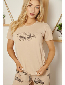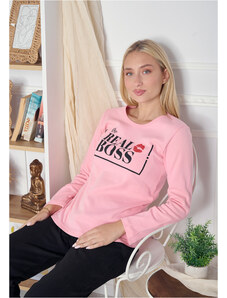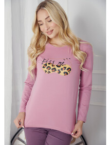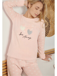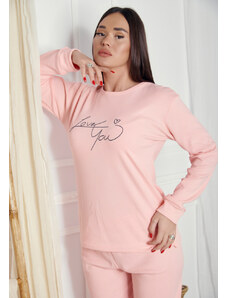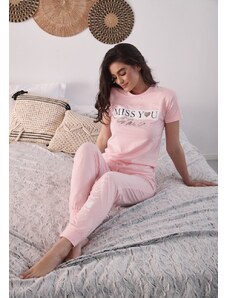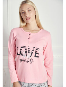 Comfort Πιτζάμα γυναικεία με logo Love και animal print παντελόνι - ροζ