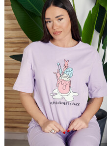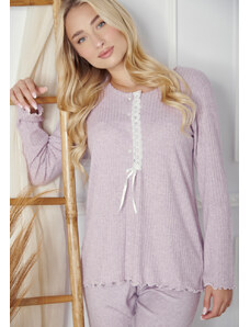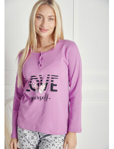 Comfort Πιτζάμα γυναικεία με πεταλούδα και logo με παντελόνι με καρδίες - Μωβ
