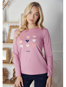 Comfort Πιτζάμα γυναικεία με μακρύ παντελόνι με καρδούλες και logo - Βυσσινί