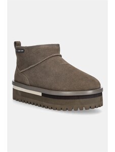 Μπότες χιονιού σουέτ Tommy Jeans TJW FLATFORM SNOW BOOT SUEDE χρώμα: πράσινο, EN0EN02841
