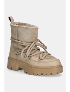 Μπότες χιονιού Tommy Hilfiger REAL SHEARLING LACEUP χρώμα: μπεζ, FW0FW08996