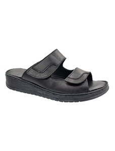 Dafni 449 Μαύρες Δερμάτινες Γυναικείες Παντόφλες
