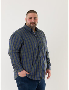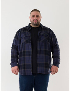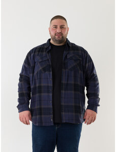 Double Ανδρικό Πουκάμισο Flannel Long Sleeve Plus Size - Μπλε - 003024