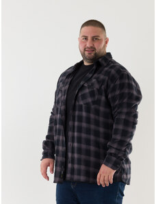 Double Ανδρικό Πουκάμισο Flannel Long Sleeve Plus Size - Σκ. Γκρι - 019024