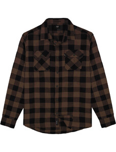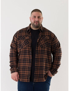 Double Ανδρικό Πουκάμισο Flannel Long Sleeve Plus Size - Καφέ - 021024