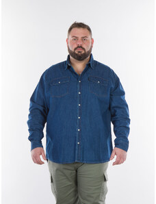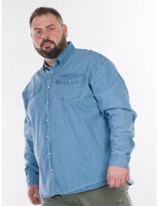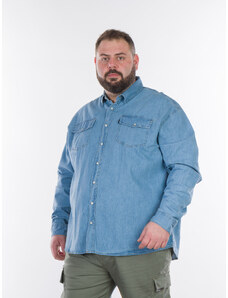 Double Ανδρικό Ανοιχτόχρωμο Jean Πουκάμισο Plus Size - Αν. Μπλε - 006040