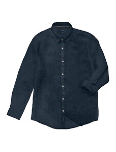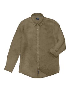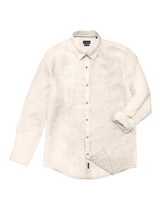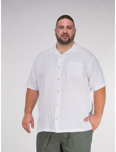 Double Λινό Ανδρικό Πουκάμισο Με Γιακά Camp - Άσπρο - 005044