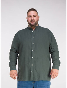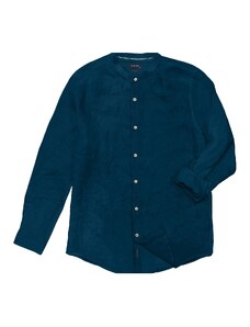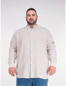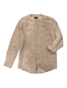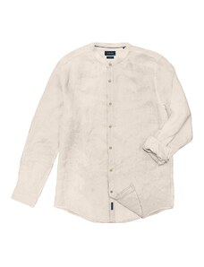 Double Λινό Ανδρικό Πουκάμισο με Μαο γιακά - Άσπρο