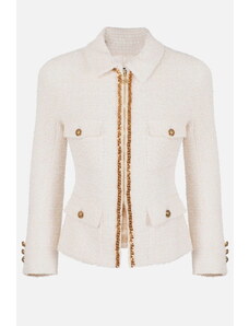 Elisabetta Franchi Γυναικείο Σακάκι Τουίντ Με Φερμουάρ Λευκό