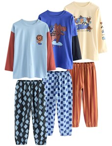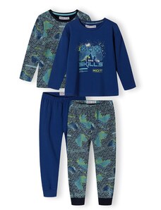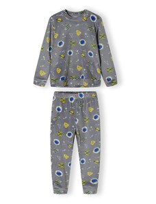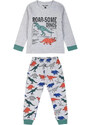 Εντυπωσιακή και διασκεδαστική παιδική πιτζάμα για τους μικρούς λάτρεις των δεινοσαύρων! Το σετ περιλαμβάνει μια μακρυμάνικη μπλούζα σε ανοιχτό γκρι χρώμα με εντυπωσιακή στάμπα δεινοσαύρων και πληροφορίες για τον Τυραννόσαυρο Ρεξ και τον Τρικεράτωπα. Το παντελόνι με πολύχρωμο μοτίβο δεινοσαύρων προσθέτει έξτρα στυλ και διασκέδαση. Ιδανική για ζεστές και άνετες βραδιές γεμάτες φαντασία!