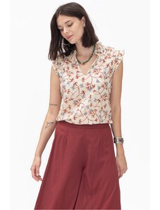 Colores Γυναικείο Τοπ Βαμβακερό με Βολάν και Ανθισμένο Print Regular Fit