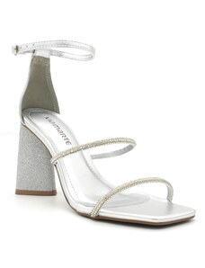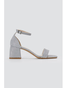 TFP Block Heel Ankle Strap Sandals - 1561 - Silver Lurex