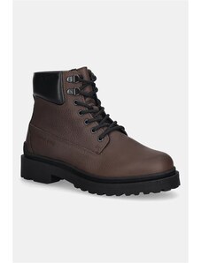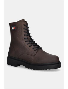 Παπούτσια Tommy Jeans TJM LACE UP BOOT LEATHER χρώμα: καφέ, EM0EM01629