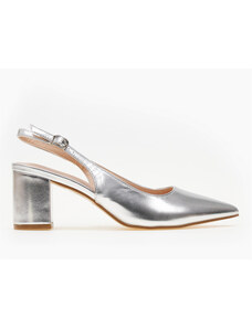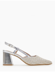 Issue Μυτερές εξώφτερνες γόβες με χοντρό τακούνι και ψάθινο σχέδιο - Ασημί - 014011