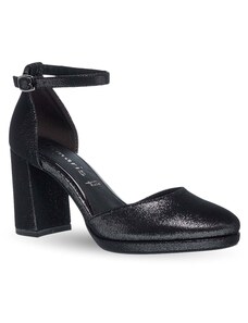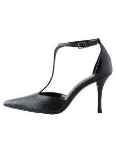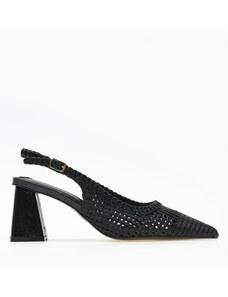 Issue Μυτερές εξώφτερνες γόβες με χοντρό τακούνι και ψάθινο σχέδιο - Μαύρο - 032011
