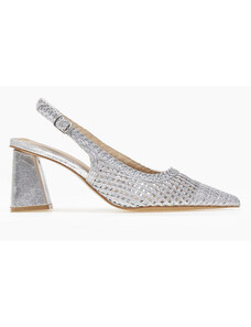 Issue Μυτερές γόβες με χοντρό τακούνι και πλεκτό σχέδιο - Ασημί - 014011