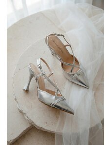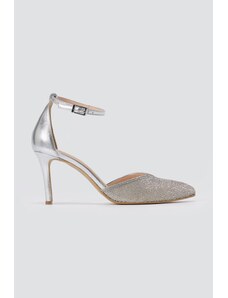 IRIS Pointed Ankle Strap Pumps Rhinestone - 1011 - Silver Strass