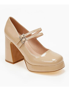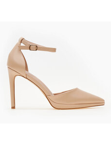 Issue Μυτερές εξώφτερνες γόβες με μπαρέτα και μεταλλική λεπτομέρεια - Μπεζ - 035014