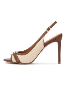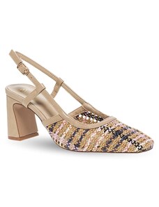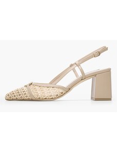Issue Open heel μυτερές γόβες με χοντρό τακούνι και σχέδιο ψάθας - Μπεζ - 035011
