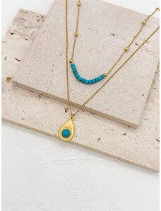 Modati Κολιέ Gold Blue Droplet and Beads ΚΩΔ: AN596