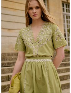 Petite Mendigote Paris Petite Mendigote Γυναικεία Μπλούζα Βαμβακερή Με Κέντημα Και V Λαιμόκοψη