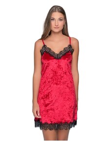 Milena Γυναικείο Νυχτικό Βελούδο Στενή Δαντέλα, Χρώμα: Ρουμπινί