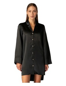 Milena Γυναικεία Πουκαμίσα Σατέν Κουμπιά Μαργαριτάρια, Χρώμα: Μαύρο