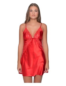 Milena Γυναικείο Νυχτικό & String Σατέν Με Ντεκολτέ V, Χρώμα: Καρπουζί