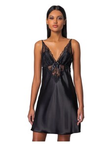 Milena Γυναικείο Νυχτικό & String Σατέν Δαντέλα Φιόγκος, Χρώμα: Μαύρο