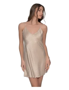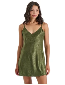 Milena Γυναικείο Σατέν Νυχτικό με Λεπτές Τιράντες, Χρώμα: Λαδί