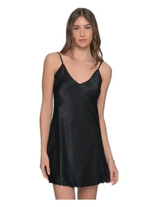 Milena Γυναικείο Νυχτικό Σατέν Πουά Στενή Δαντέλα, Χρώμα: Καφέ