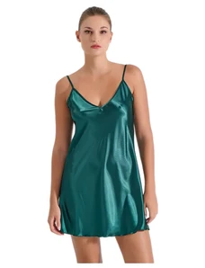 Milena Γυναικείο Σατέν Νυχτικό με Λεπτές Τιράντες, Χρώμα: Σμαραγδί