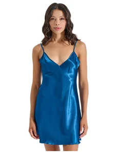 Milena Γυναικείο Σατέν Νυχτικό με Λεπτές Τιράντες, Χρώμα: Πετρόλ