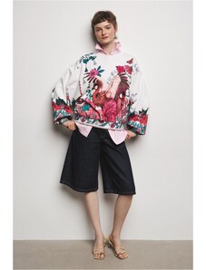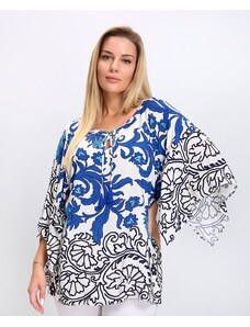 Luisa Viola Γυναικεία Μπλούζα Regular Fit Viscose Με Μοτίβο Και Φαρδύ Μανίκι Λευκή