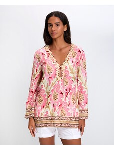 Maliparmi Γυναικεία Μπλούζα με Κεντήματα και Πλαϊνά Σκισίματα Regular Fit σε Ροζ