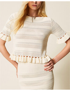 ESQUALO Γυναικείο εκρού πλεκτή μπλούζα 02505 Off White, Χρώμα Εκρού, Μέγεθος L