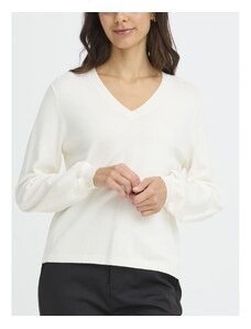 FRANSA Γυναικεία λευκή πλεκτή μακρυμάνικη μπλούζα με V 20617454-110701, Χρώμα Λευκό, Μέγεθος M
