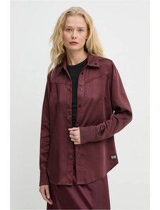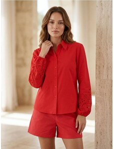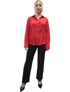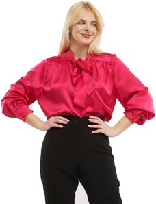 FIBES Γυναικείο μακρυμάνικο σατέν αμπιγέ πουκάμισο 03-6517 Fuxia, Χρώμα Κόκκινο, Μέγεθος XL