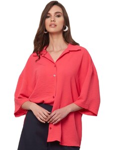 ANNA RAXEVSKY Γυναικείο φούξια oversize πουκάμισο Z21104 FUXIA, Χρώμα Κόκκινο, Μέγεθος XS