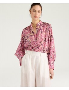 Boss Γυναικείο Πουκάμισο Regular Fit Μεταξωτό Με Λουλουδάτο Μοτίβο Μπλε