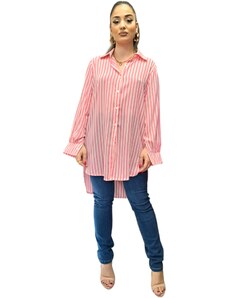 Vilagallo Γυναικείο Πουκάμισο Ριγέ Με Animal Print Και Statement Μοτίβο Στην Πλάτη