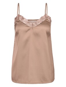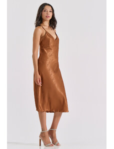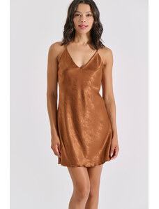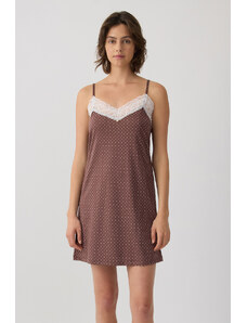 Milena Γυναικείο Νυχτικό Σατέν Πουά Στενή Δαντέλα, Χρώμα: Καφέ