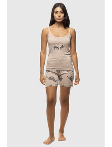 Milena Γυναικείο Νυχτικό & String Σατέν Με Ντεκολτε V, Χρώμα: Μόκκα